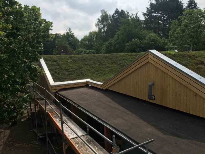 Lange Zeit fanden Flachdächer vornehmlich als Dachkonstruktionen im Industrie-, Hallen- und Plattenbau Anwendung, um das Gebäude vor Wind und Wetter zu schützen und Regenwasser gezielt abzuleiten. In der heutigen Zeit finden Flachdächer auch im Wohnungsbau zunehmend mehr an Bedeutung. Dies liegt zum einen an den wachsenden ästhetischen Ansprüchen an die Architektur, vor allem aber an den Vorzügen, die ein Flachdach bietet. Nicht nur in Kombination mit einer extensiven Dachbegrünung können im Schall- und Wärmeschutz deutlich bessere Werte als beim Steildach erzielt werden. Eine zusätzliche Dachbegrünung filtert darüber hinaus Schadstoffe und Feinstaub aus der Luft und schützt die Dachabdichtung vor Wind, Hagel und Extremtemperaturen. Der zusätzliche Einsatz von Solarthermie und Photovoltaik nutzt die natürlichen Ressourcen für ein rundum umweltfreundliches Eigenheim.